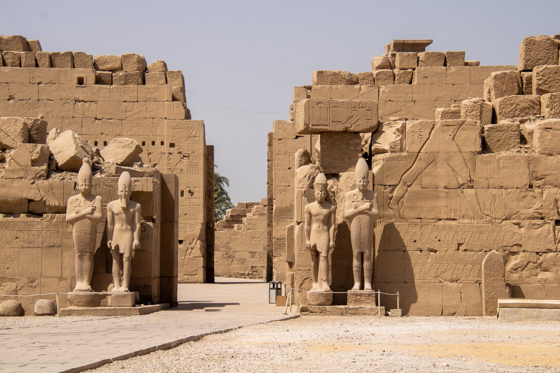 Jeder Herrscher graviert sein Kapitel in Wände und Pfeiler, überschreibt ältere Passagen, füllt Pylone mit Spolien oder hebt Neues aus dem Sand. Wer die Augen für Details schärft, erkennt Überarbeitungen in Kartuschen, Spuren von Tilgungen und Ergänzungen, Farbfragmente an Decken mit Sternenhimmel, feinste Chiselschnitte in Hieroglyphen – ein Palimpsest, der sich in unterschiedlichen Lichtlagen immer wieder neu lesen lässt. Die Prozessionsallee, die einst als Sphingenstraße den Amun‑Bezirk mit dem Luxor‑Tempel verband, ist heute wieder auf langen Teilen begehbar und macht die Verbindung zwischen Festkult und Stadtkörper sichtbar. Am Heiligen See spiegeln sich die Mauern in grünem Wasser; hier wurden rituelle Reinigungen vollzogen, und noch heute wirkt dieser Ort wie eine ruhige Klammer um das Gewimmel der Pylone.